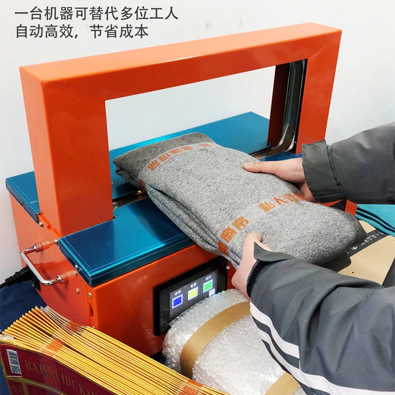 日均500捆以上<br(大型工厂/物流中心) | 人工成本高、效率瓶颈 | ▶ 全自动系列<br· KJHF2020S:OPP膜带无胶捆扎,1500次/小时<br· KJHT3030:大件捆扎机(窗帘/纸箱),捆紧力10-50N | ⚡省3个人工<br⏱️效率翻倍 |