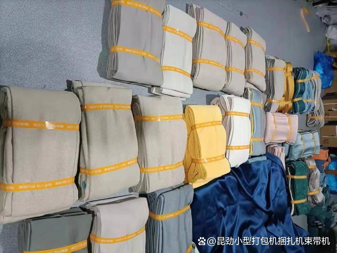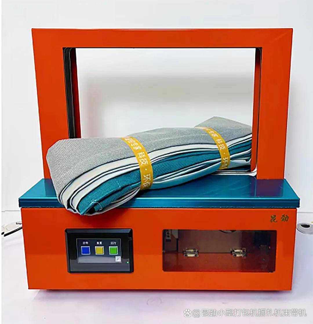 旭彩网上海某主打定制的窗帘工作室,客户对包装美观度要求较高(需捆扎位置居中、无勒痕)。昆劲为其推荐了KJ-HT3030机型与3公分定制opp膜带的方案,通过限位板和预设参数实现每条窗帘的捆扎位置误差<1cm,面料表面无可见压痕,客户复购率因此提升35%。